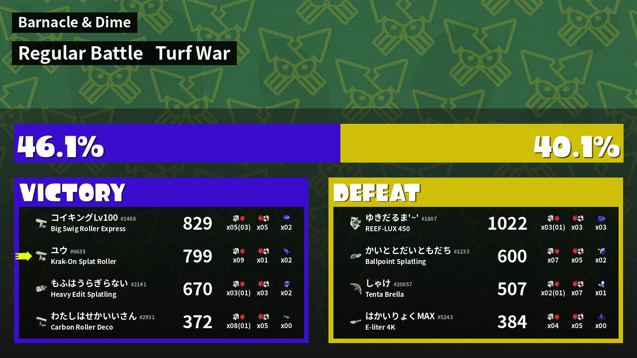 | Mode | Turf War - Regular Battle | ||