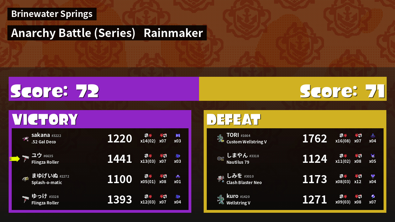 | Medals | #1 Turf Inker #1 Splat Assister #1 Ground Traveler | ||