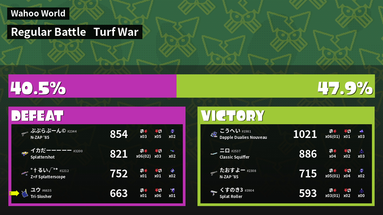 | Mode | Turf War - Regular Battle | ||