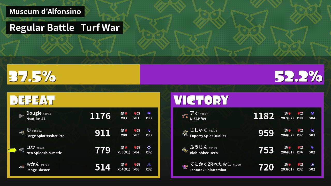| Medals | #1 Enemy-Base Inker #1 Splat Assister #1 Damage Taker | ||
