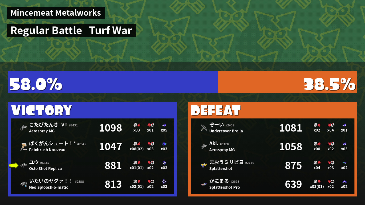 | Mode | Turf War - Regular Battle | ||
