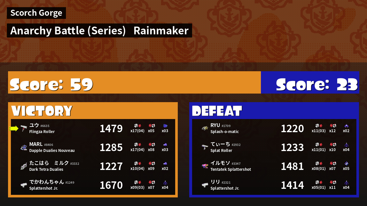 | Splatlandian Youth MARL #8406 |  Dapple Dualies Nouveau                    | 1,285 | 13 + 4 | 8 | 1.62 |  3 | |