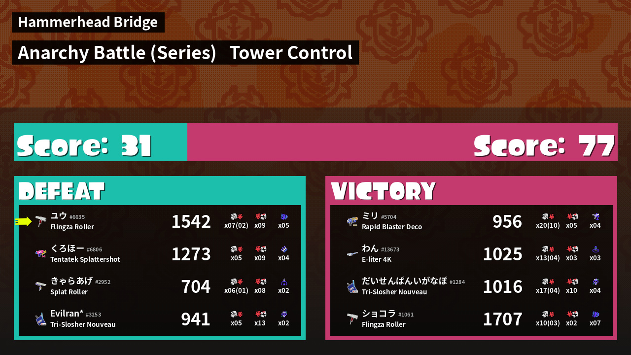 | Meditative Youth きゃらあげ #2952 |  Splat Roller                    | 704 | 5 + 1 | 8 | 0.62 |  2 | |