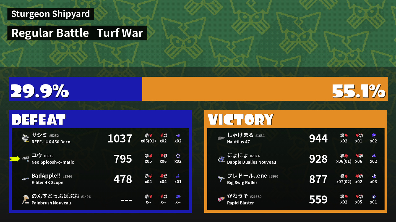 | Mode | Turf War - Regular Battle | ||