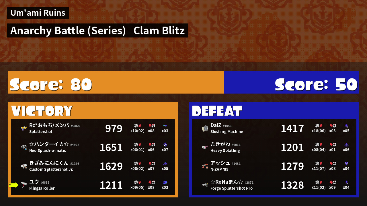 | Medals | #1 Score Booster #1 Splat Assister #1 Tenta Missiles User | ||