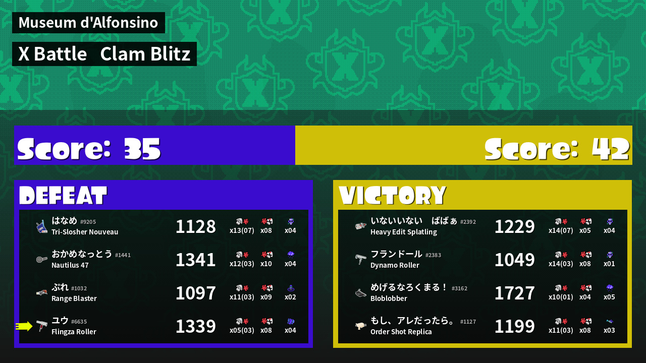 | Medals | #1 Clam Carrier #1 Tenta Missiles User #2 Turf Inker | ||