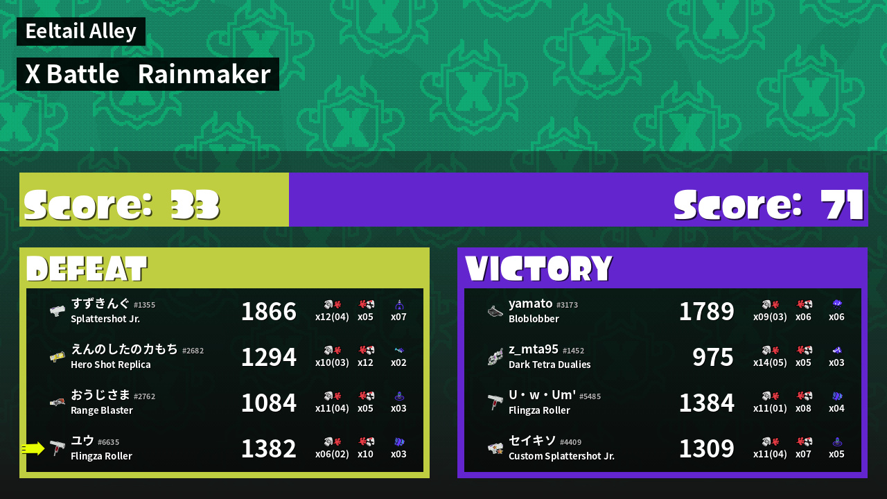 | Weapon | Flingza Roller ( Ink Mine / Tenta Missiles) | ||
