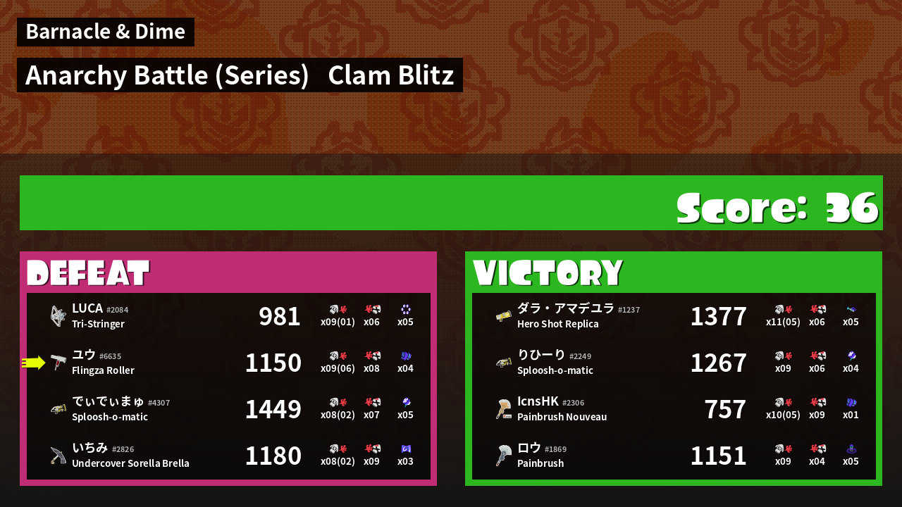 | Mode | Clam Blitz - Anarchy Battle (Series) | ||