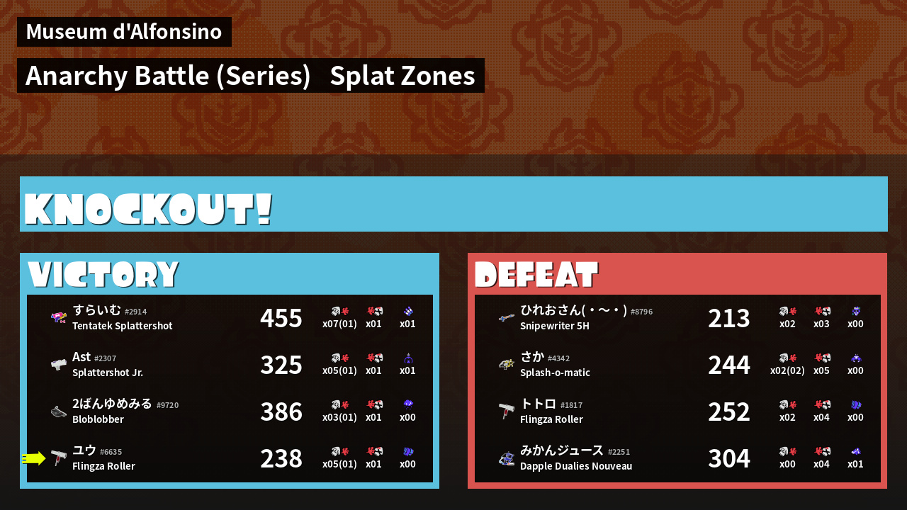 | Mode | Splat Zones - Anarchy Battle (Series) | ||