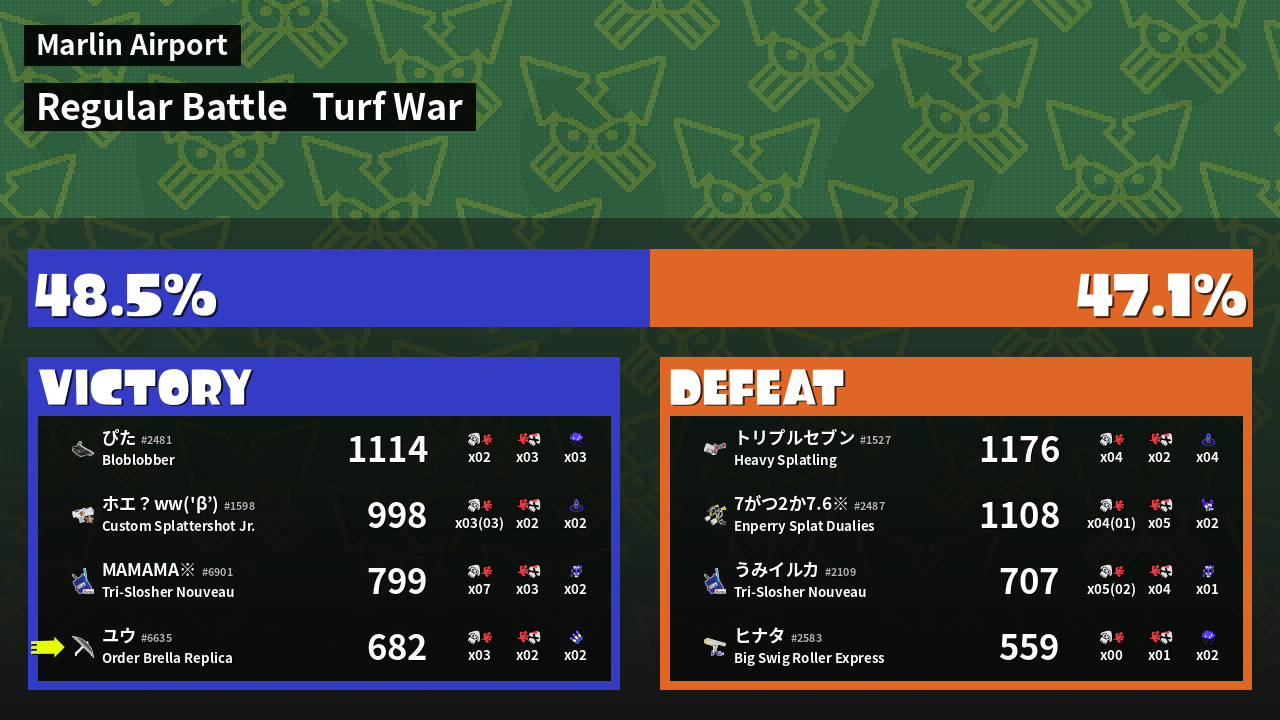 | Mode |  Turf War -  Regular Battle | ||