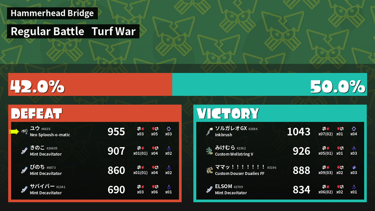 | Medals | #1 Overall Splatter #1 Turf Inker #1 Enemy-Base Inker | ||