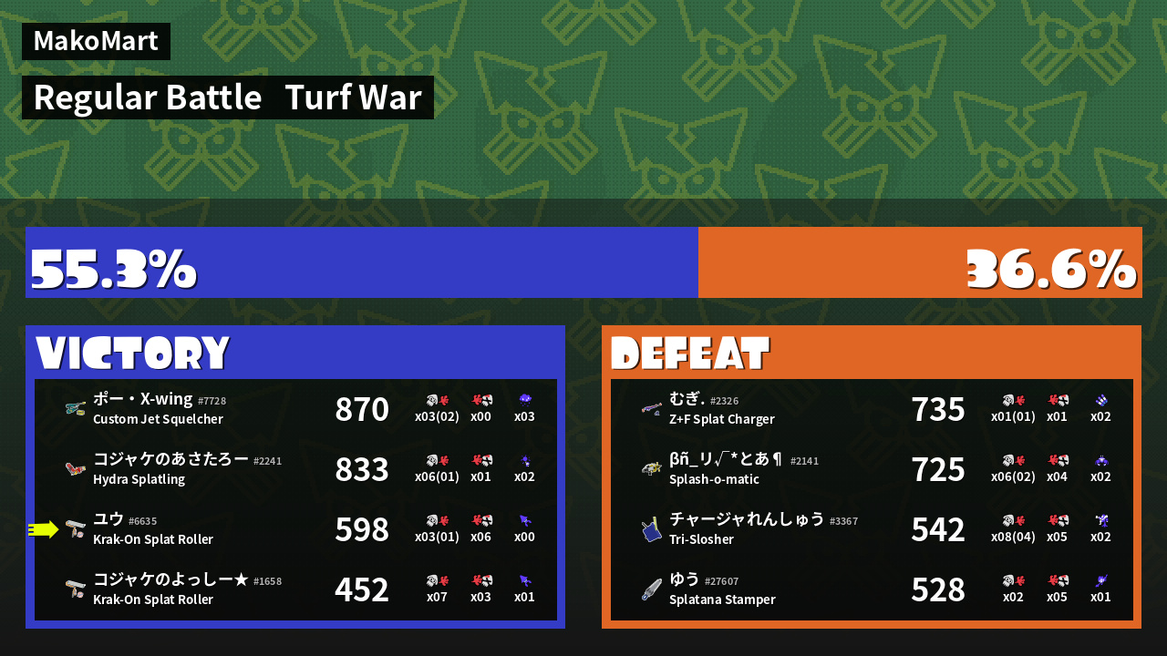 | Mode | Turf War - Regular Battle | ||