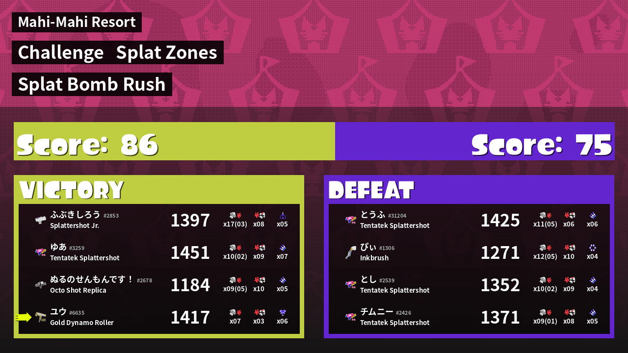 | Challenge | Splat Bomb Rush Let the Splat Bombs fly in this free-for-all! | ||