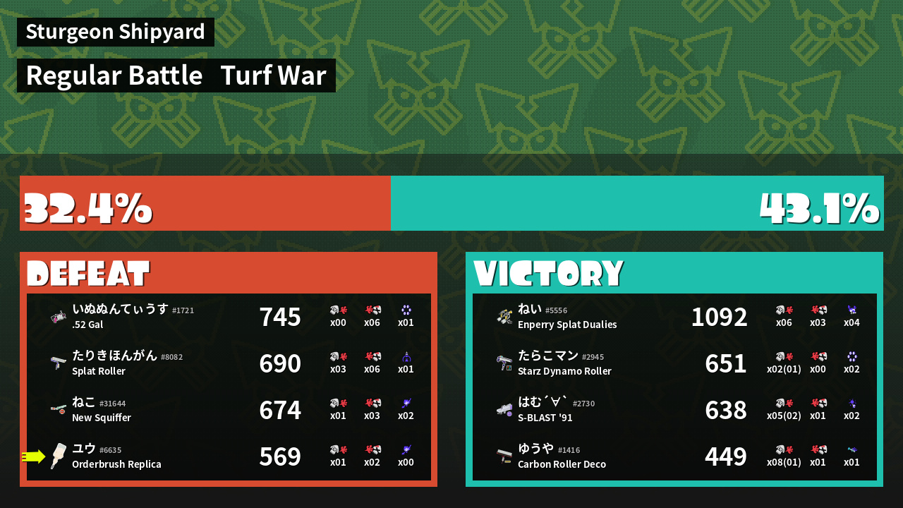 | Medals | #1 Ink Consumer #2 Overall Splatter #2 Super Jump Spot | ||