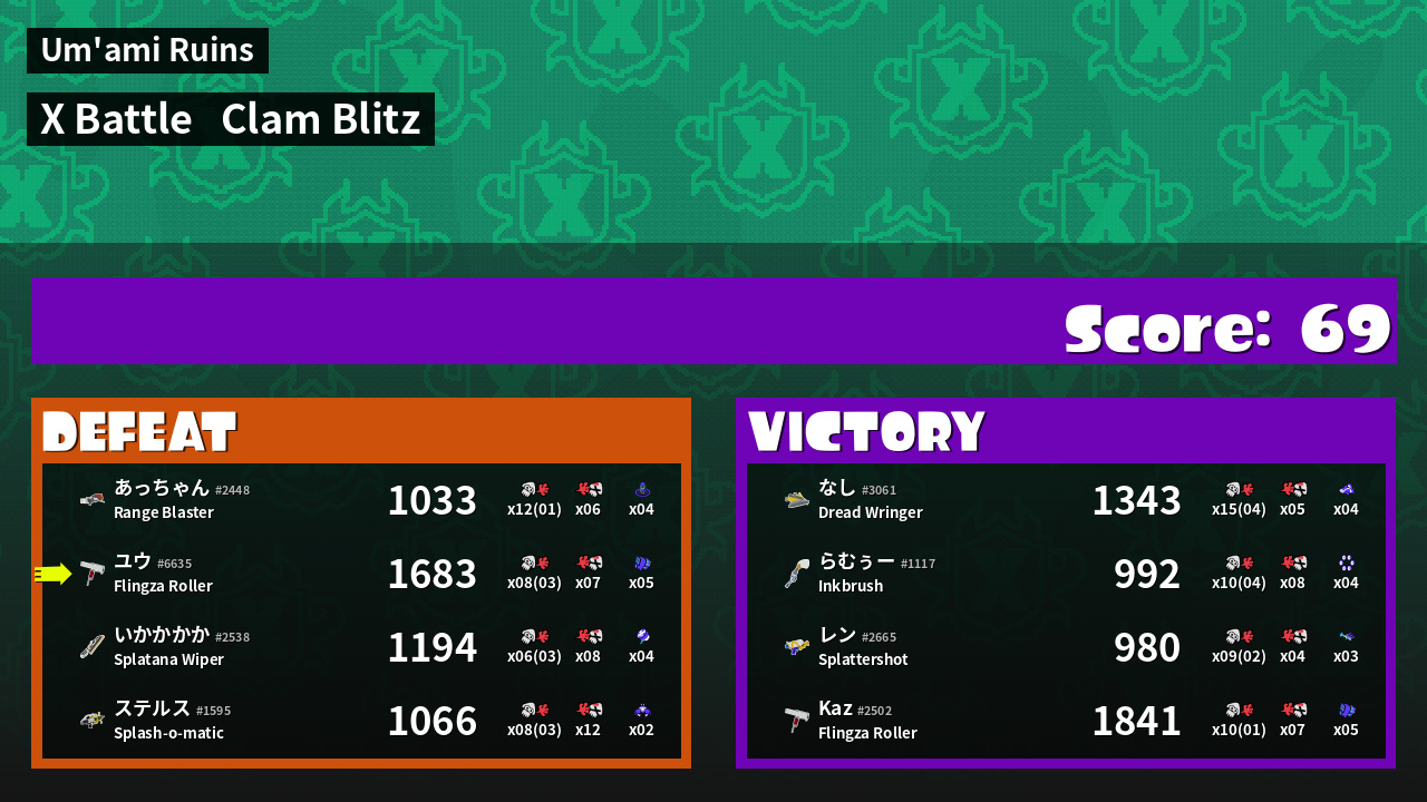 | Weapon | Flingza Roller ( Ink Mine / Tenta Missiles) | ||