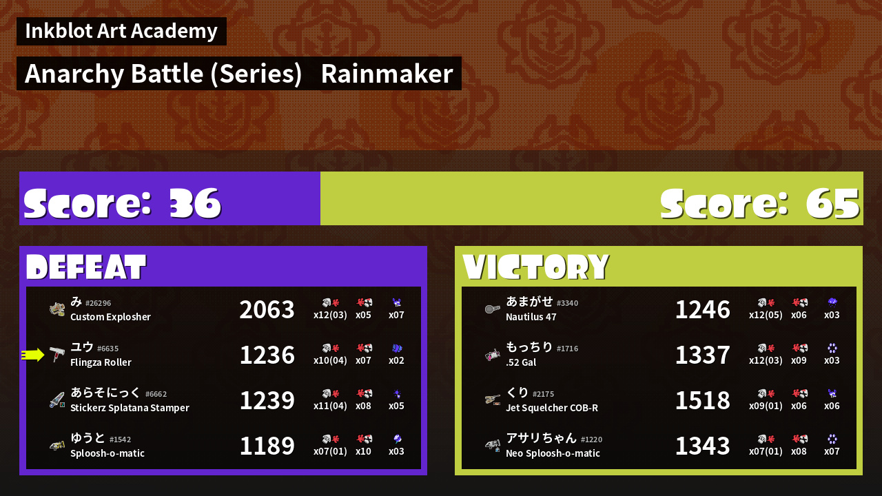 | Mode | Rainmaker - Anarchy Battle (Series) | ||
