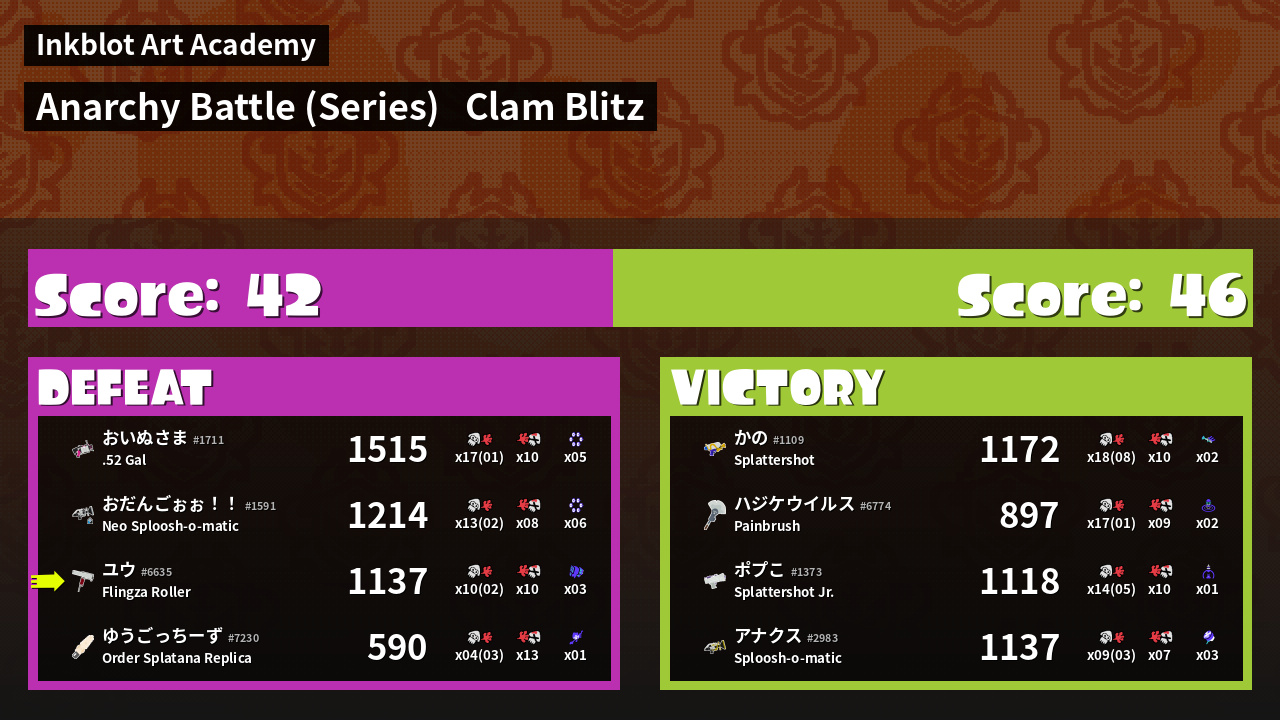 | Mode | Clam Blitz - Anarchy Battle (Series) | ||