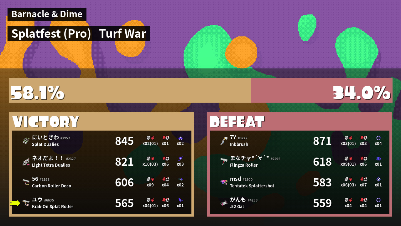 | Mode | Turf War - Splatfest (Pro) | ||