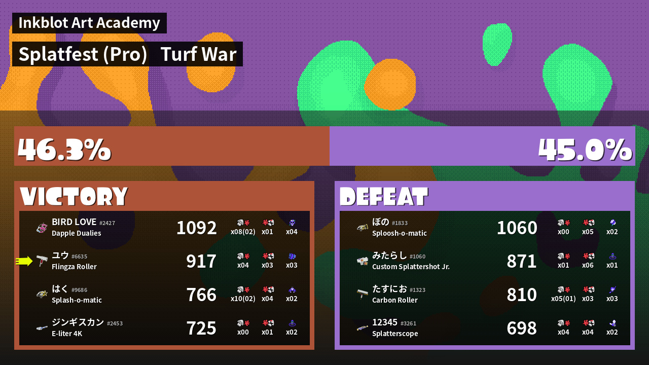 | Mode | Turf War - Splatfest (Pro) | ||