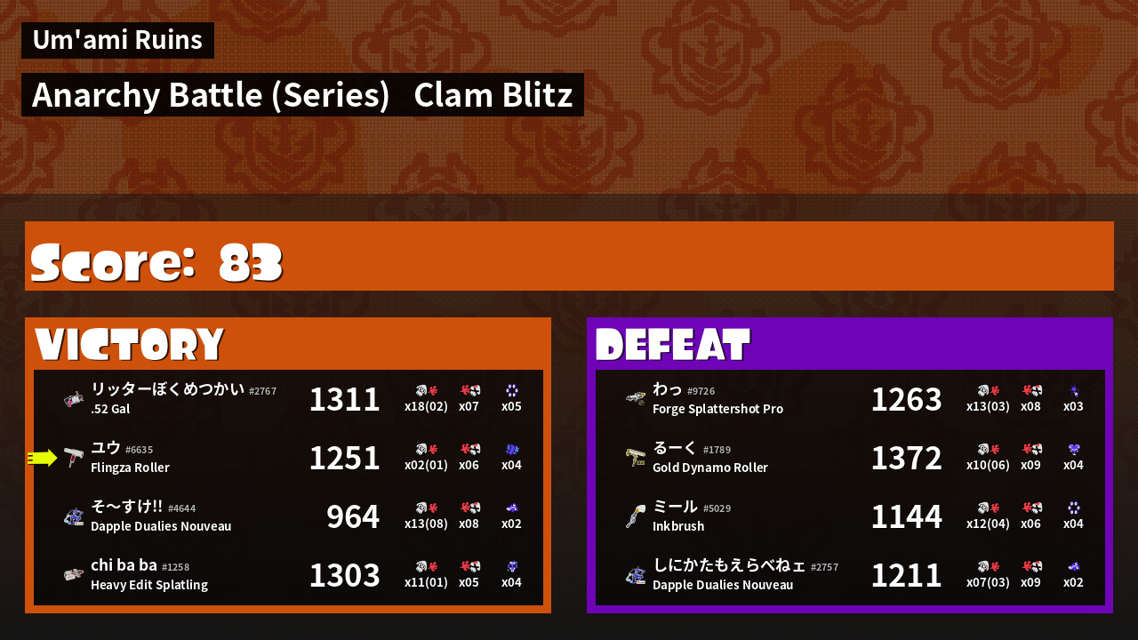 | Mode | Clam Blitz - Anarchy Battle (Series) | ||