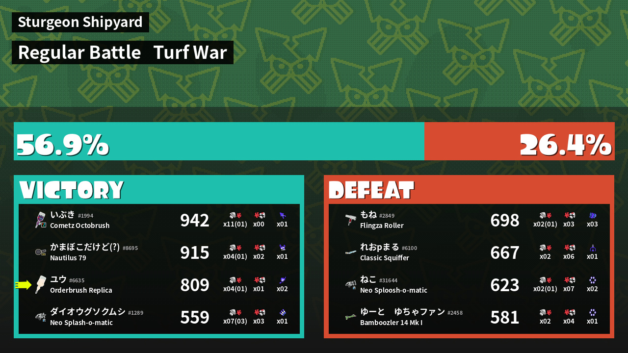 | Medals | #1 Enemy-Base Inker #1 Ink Consumer #2 Popular Target | ||