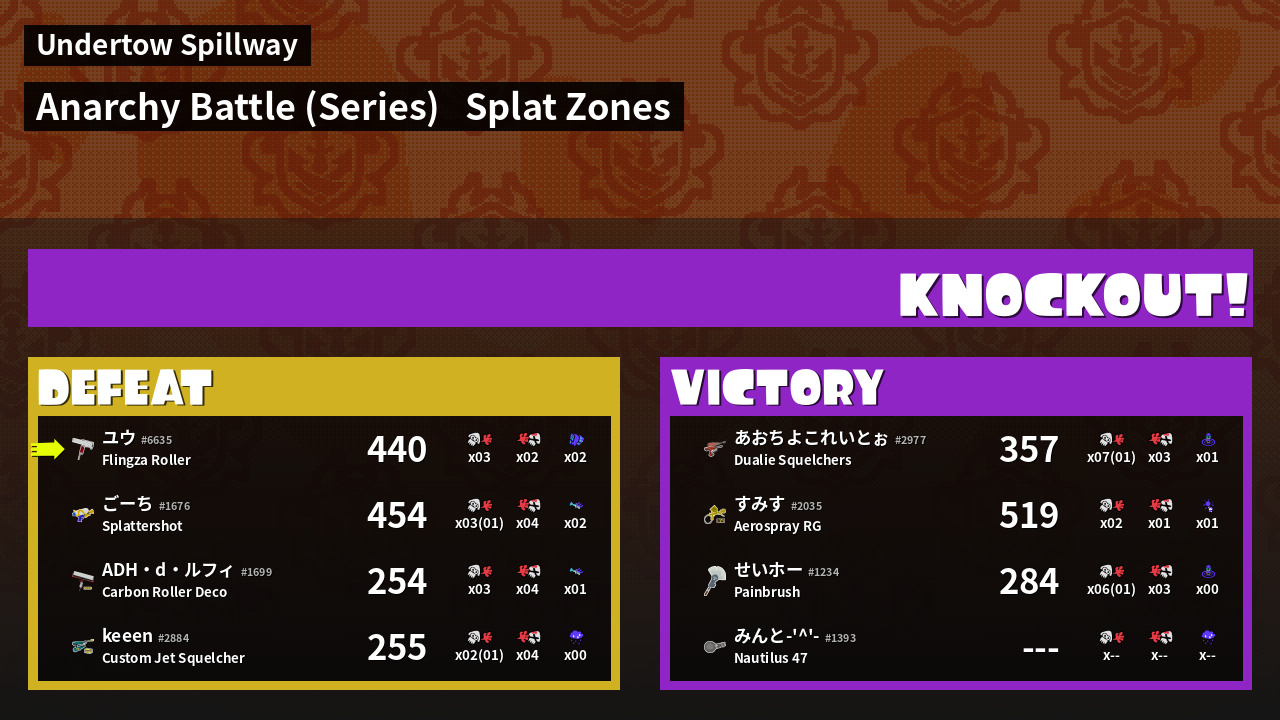 | Mode | Splat Zones - Anarchy Battle (Series) | ||