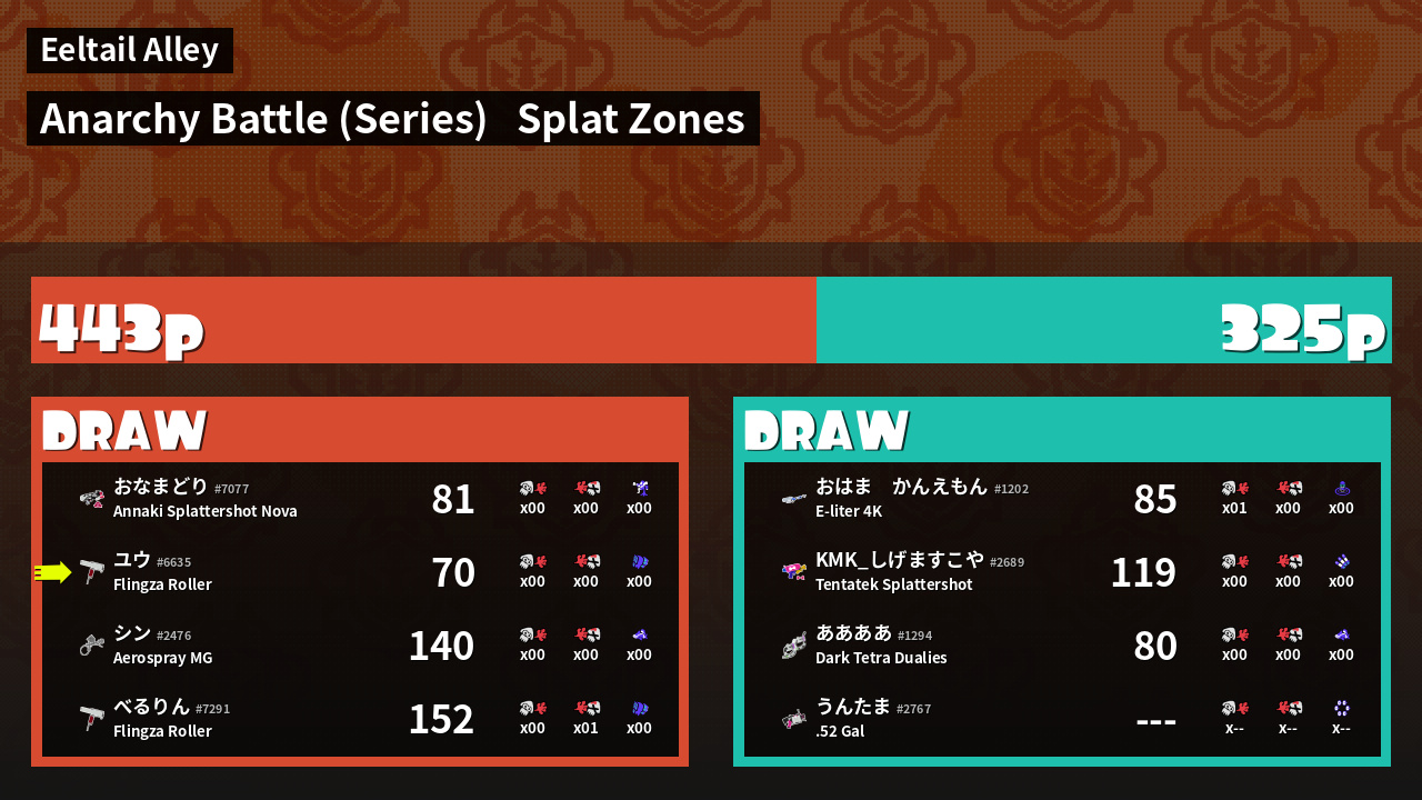 | Mode | Splat Zones - Anarchy Battle (Series) | ||