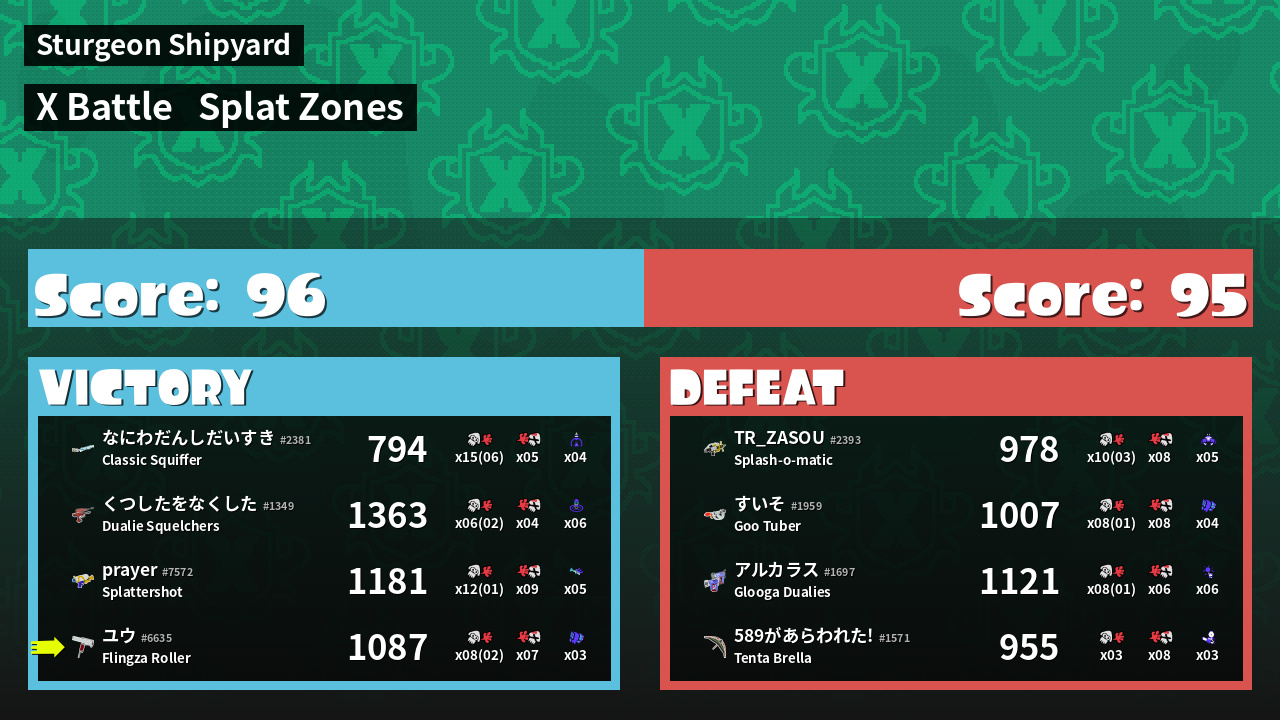 | Mode | Splat Zones - X Battle | ||