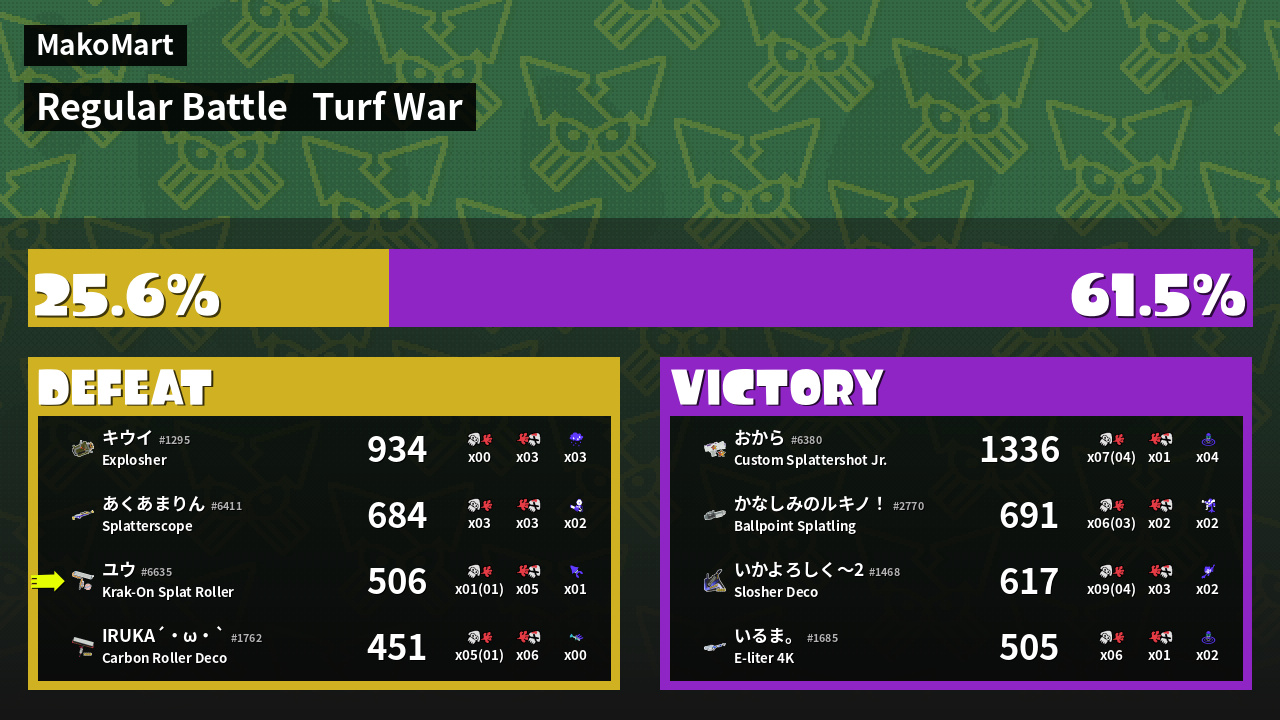 | Mode | Turf War - Regular Battle | ||