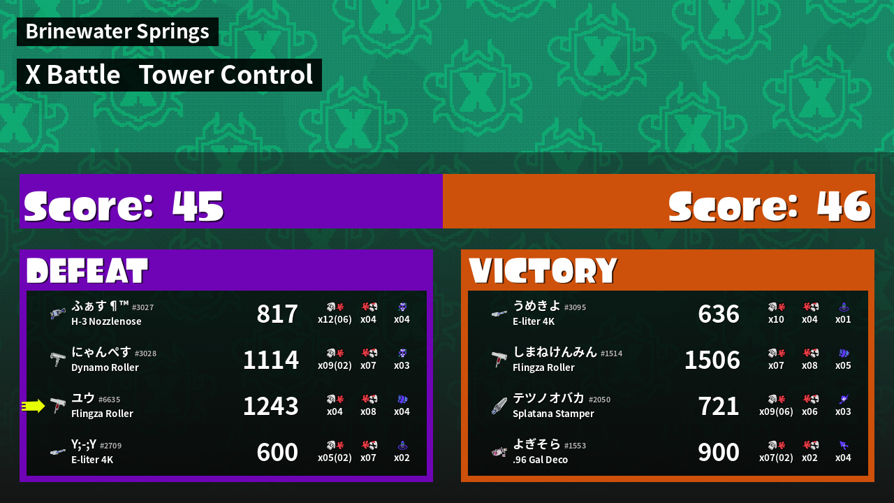 | Weapon | Flingza Roller ( Ink Mine / Tenta Missiles) | ||