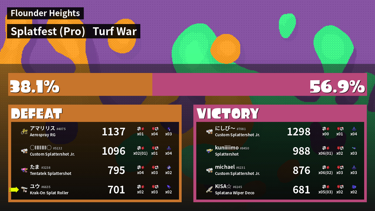 | Mode | Turf War - Splatfest (Pro) | ||