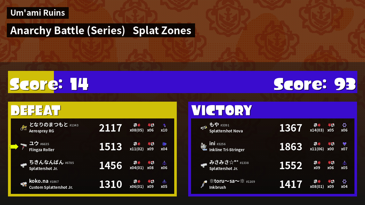 | Mode | Splat Zones - Anarchy Battle (Series) | ||