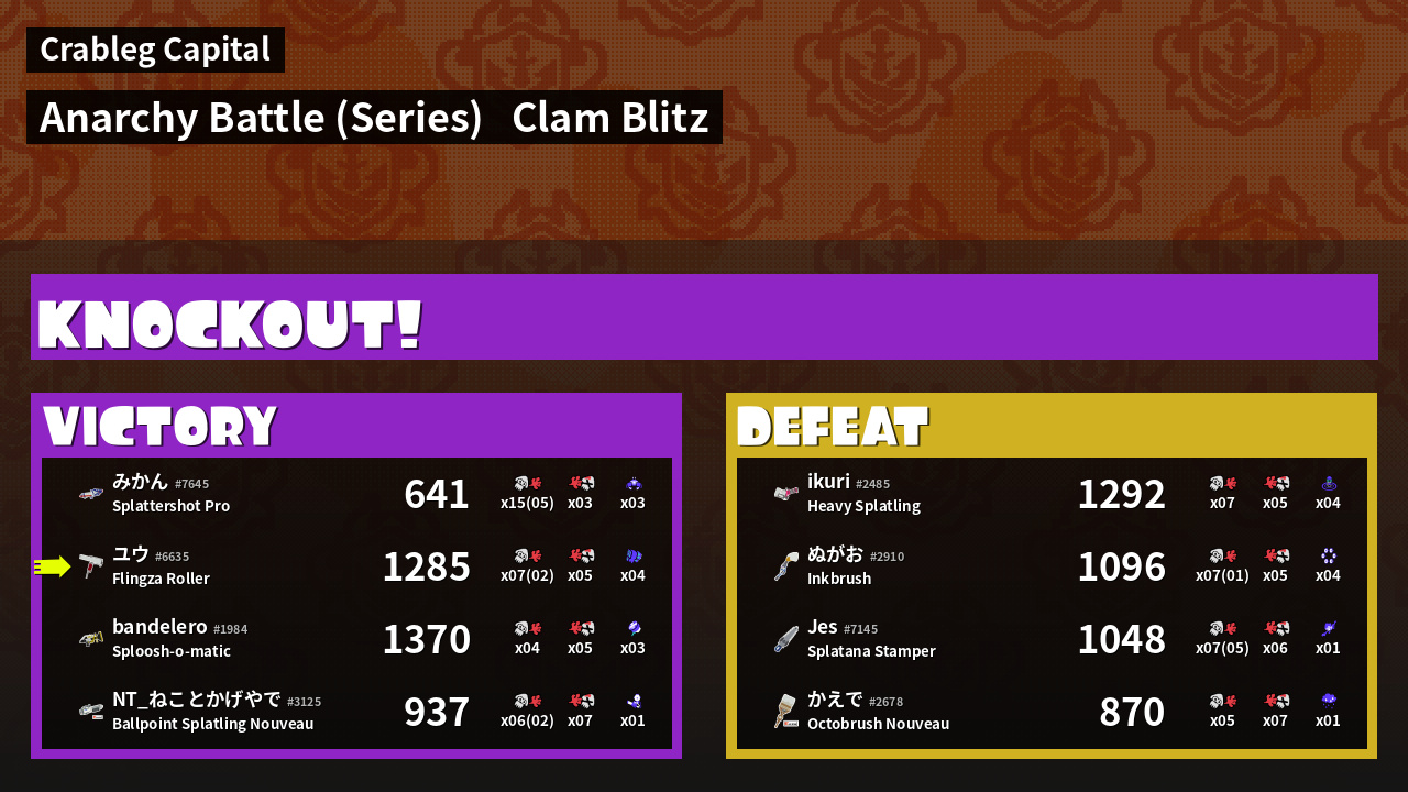 | Mode | Clam Blitz - Anarchy Battle (Series) | ||