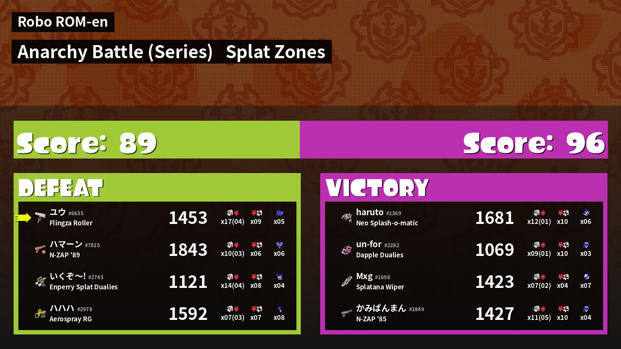| Mode | Splat Zones - Anarchy Battle (Series) | ||