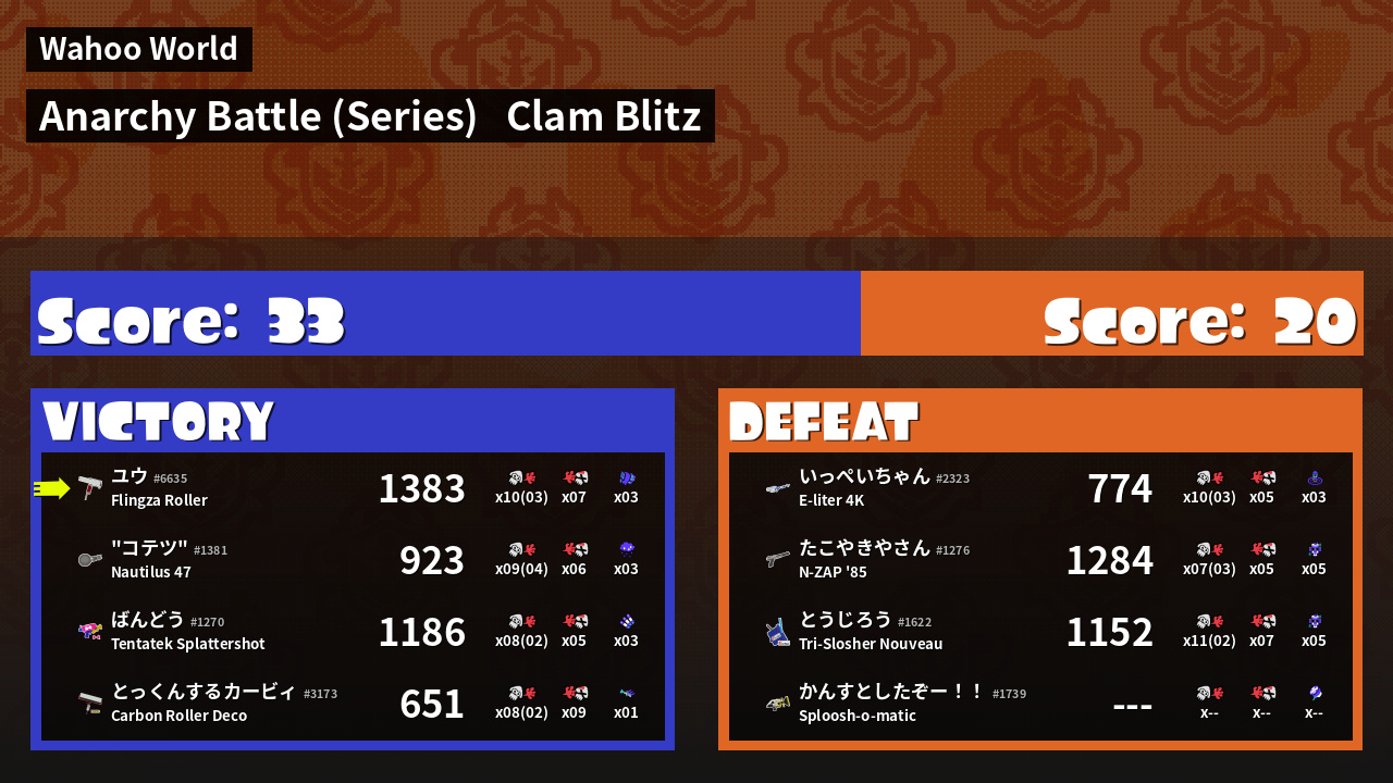 | Mode | Clam Blitz - Anarchy Battle (Series) | ||