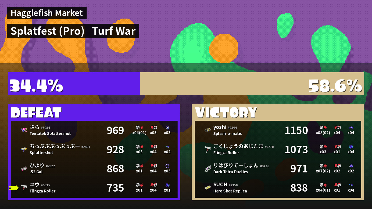 | Mode | Turf War - Splatfest (Pro) | ||