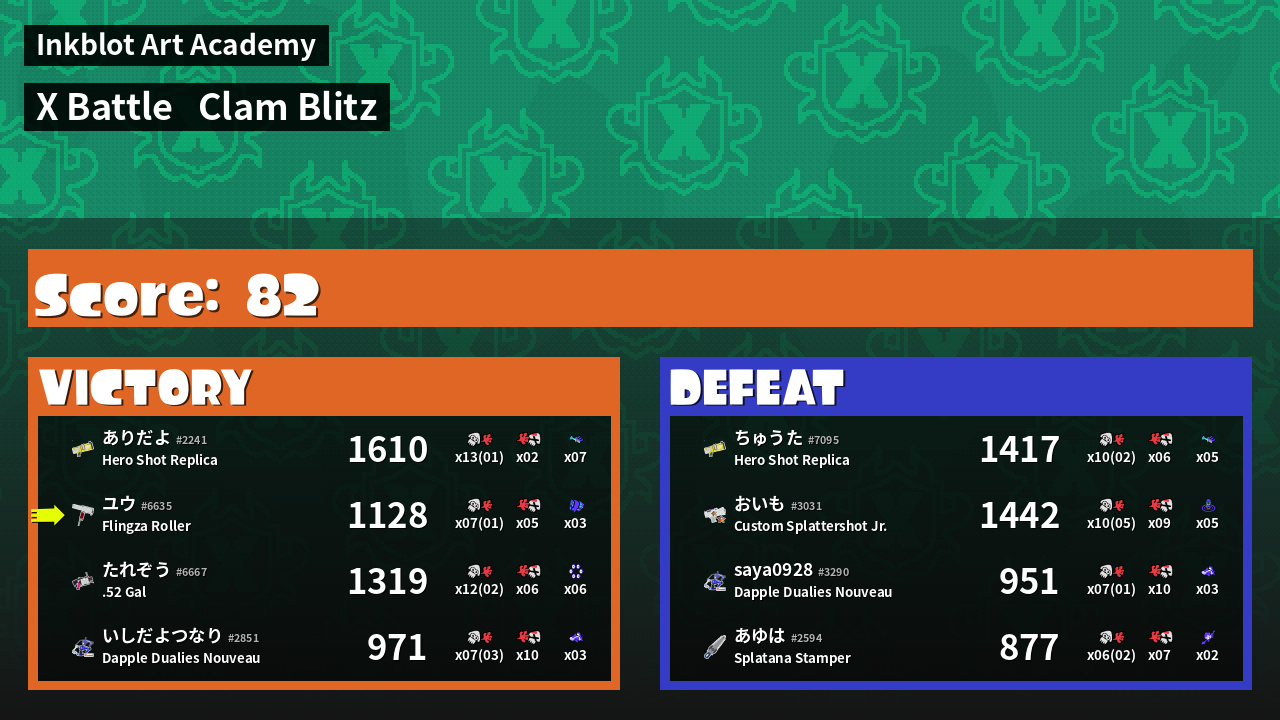 | Mode | Clam Blitz - X Battle | ||