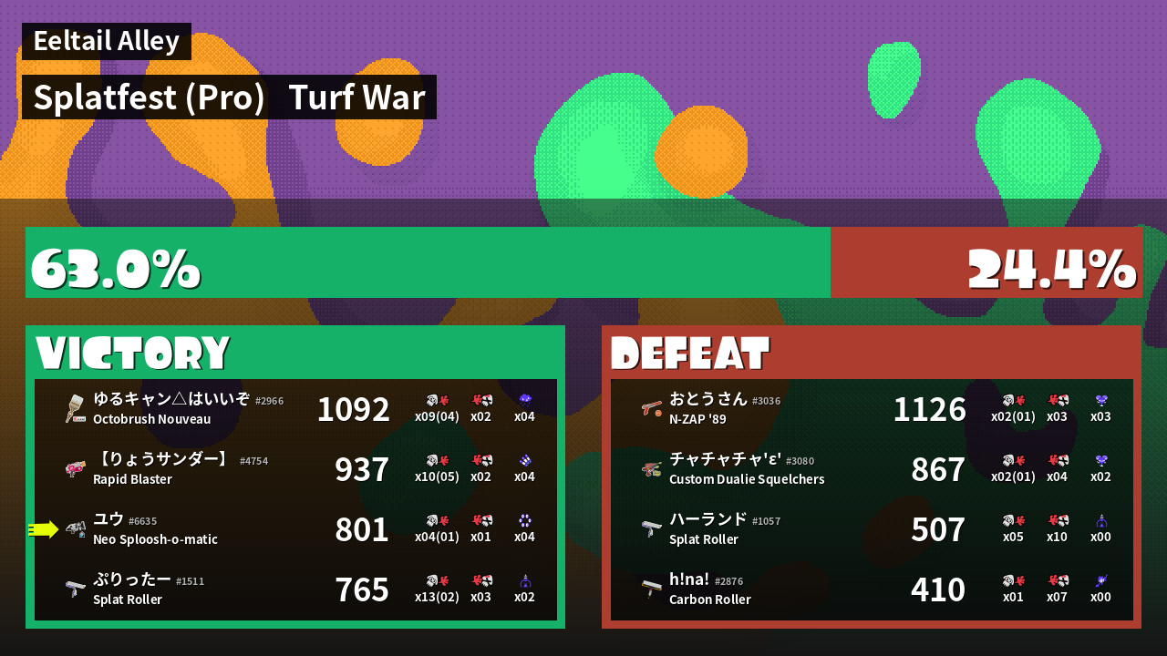 | Mode | Turf War - Splatfest (Pro) | ||