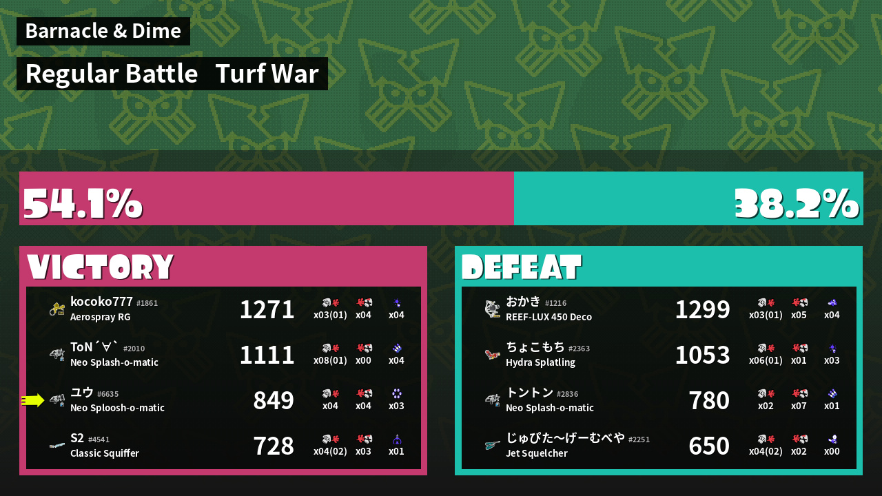 | Mode | Turf War - Regular Battle | ||