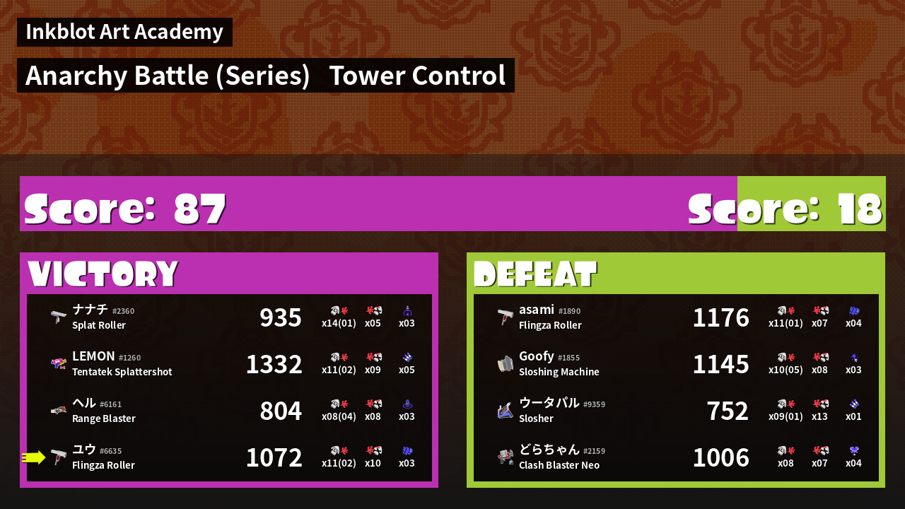 | Mode | Tower Control - Anarchy Battle (Series) | ||