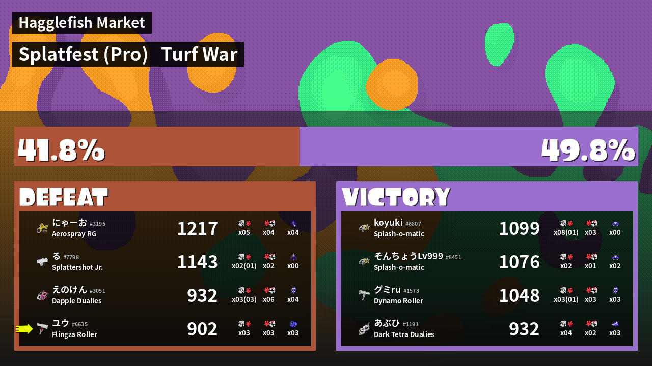 | Mode | Turf War - Splatfest (Pro) | ||