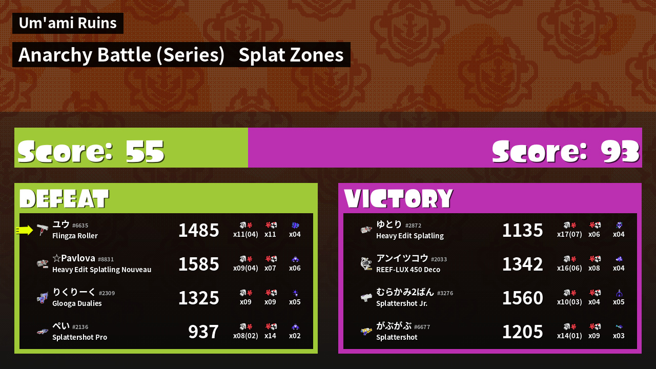| Mode | Splat Zones - Anarchy Battle (Series) | ||