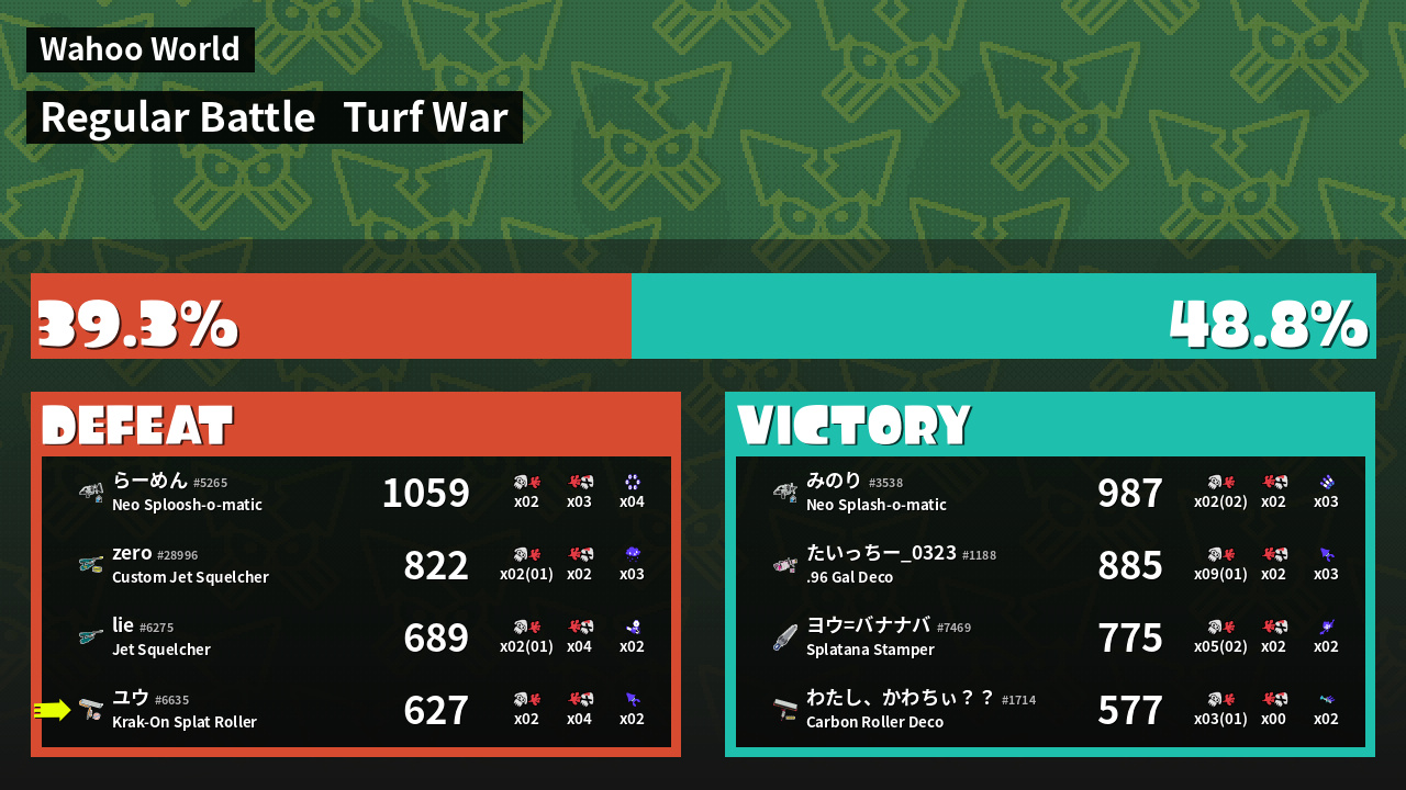 | Name | Weapon | Inked |  k |  d | KR | Sp | |