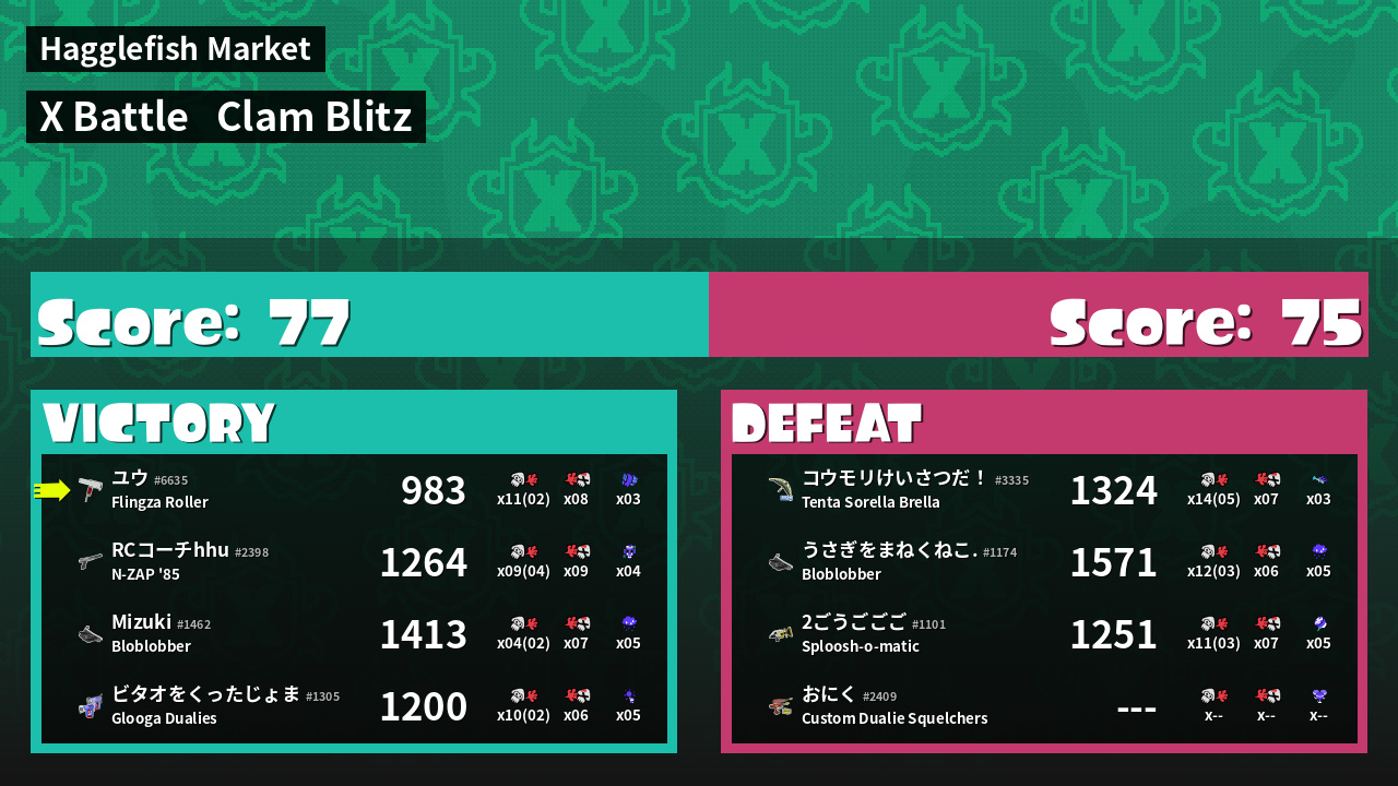 | Mode | Clam Blitz - X Battle | ||