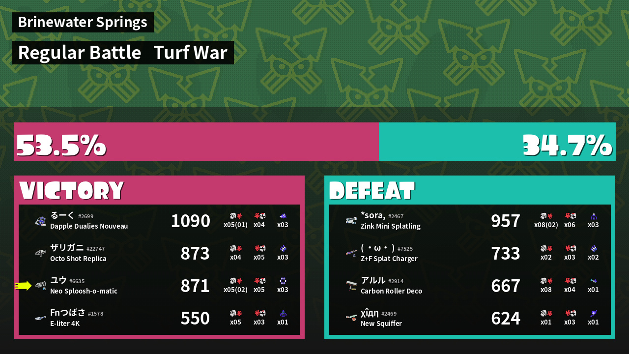 | Mode | Turf War - Regular Battle | ||