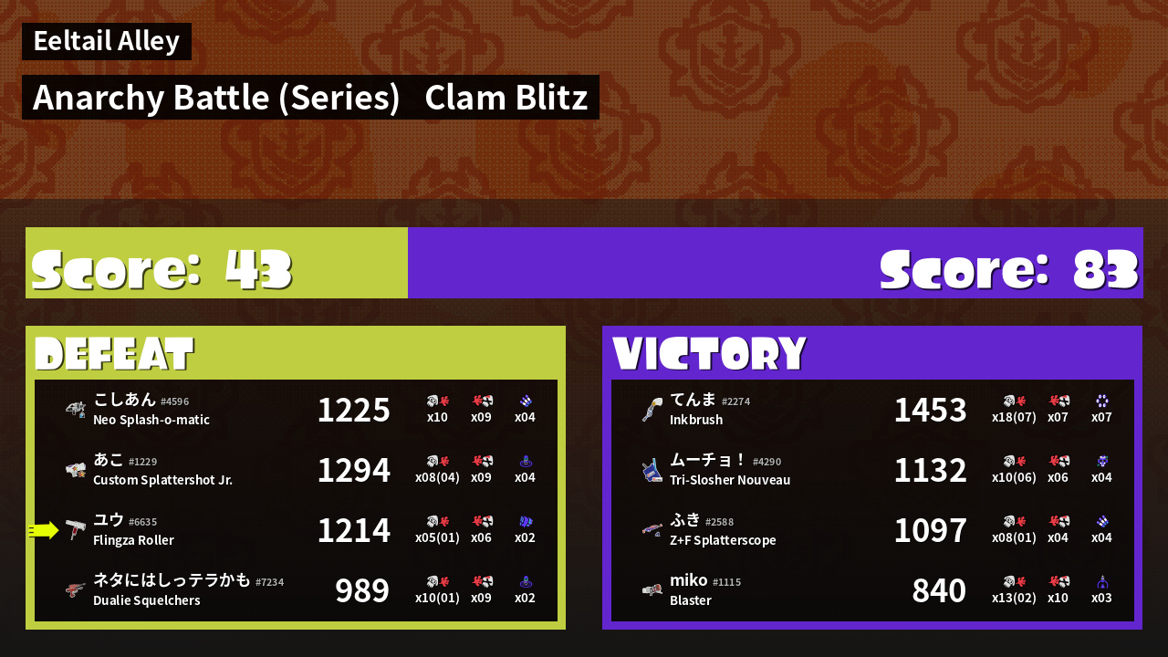 | Mode | Clam Blitz - Anarchy Battle (Series) | ||