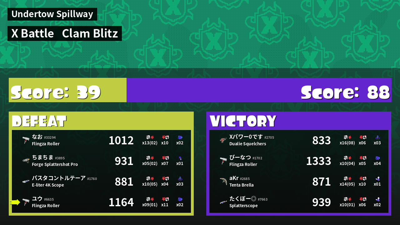 | Mode | Clam Blitz - X Battle | ||