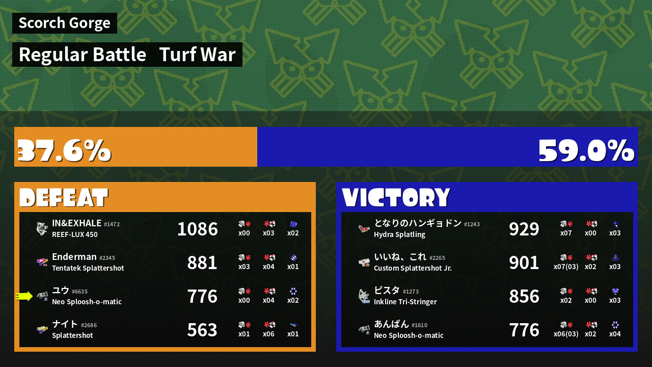 | Mode | Turf War - Regular Battle | ||