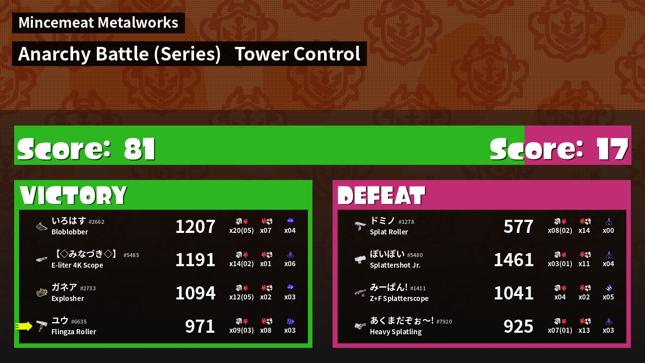 | Mode | Tower Control - Anarchy Battle (Series) | ||