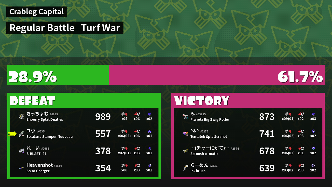 | Mode | Turf War - Regular Battle | ||